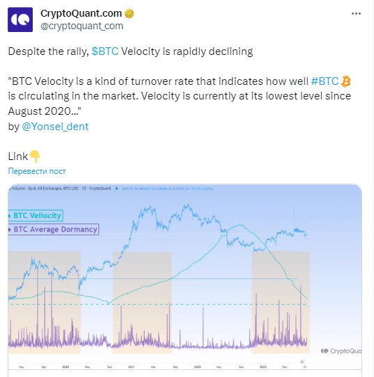Несмотря на ралли, скорость оборачиваемости BTC быстро снижается.
