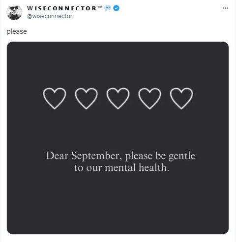 "Дорогой сентябрь, пожалуйста, будь добрым к нашему психическому здоровью"