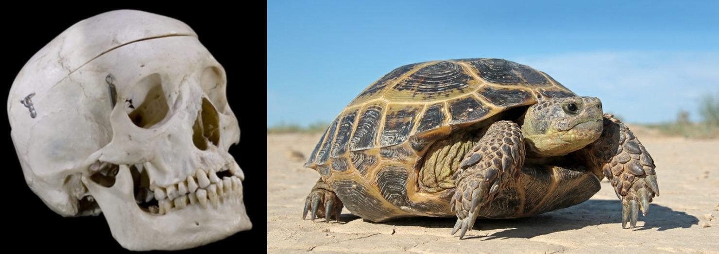 На языке Древнего Египта черепаха🐢 и верхняя часть черепной коробки 💀обозначались одним и тем же словом (пАкет).