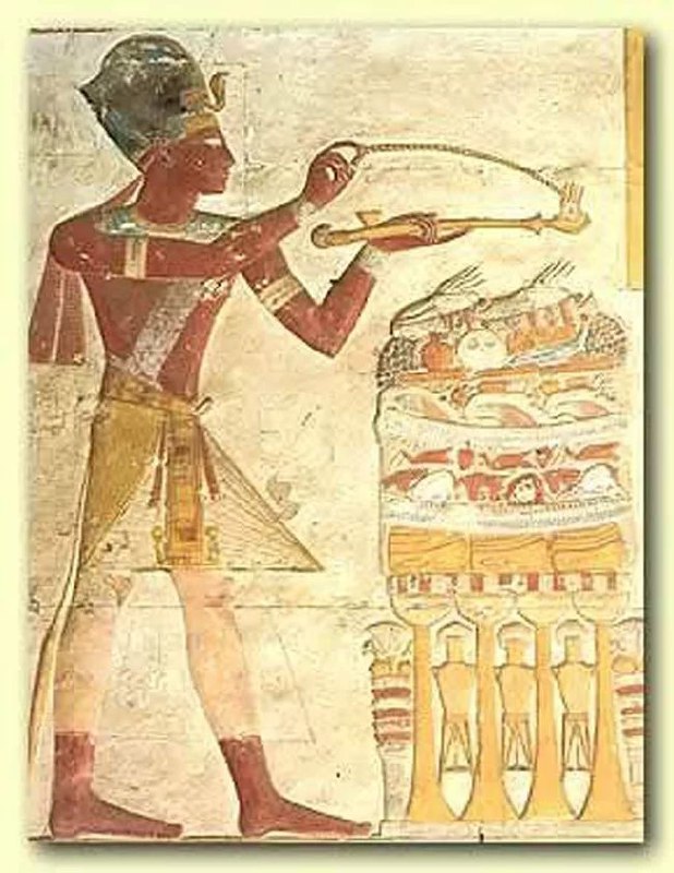 На картинке ниже - фараон с ритуальной курильницей Асетеш (в виде руки), в которой дымятся зёрна ладана.👇👇👇