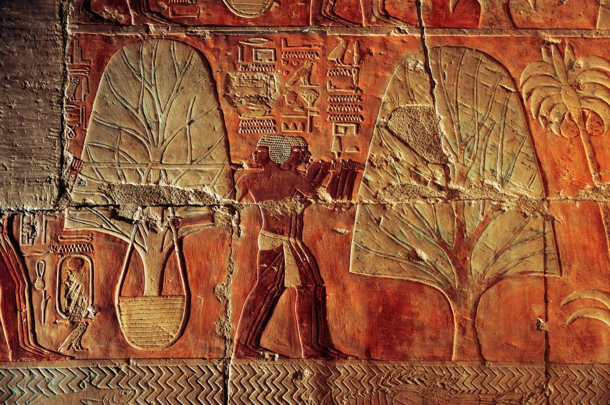 Вообще-то, на рельефе - мирровые (не ладановые) деревья, 🌳🌳действительно привезенные из #Пунта. (Земли Бога).