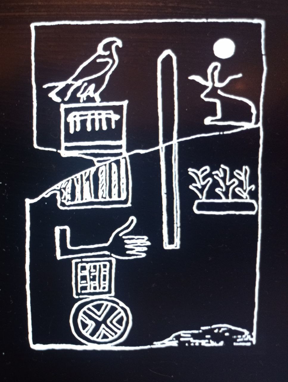 Это очень древний рисунок эпохи первой династии. Повествует о том, что Царь Джер (его имя вписано в прямоугольник Серех) в городе #Депи провёл обряд во время половодья.