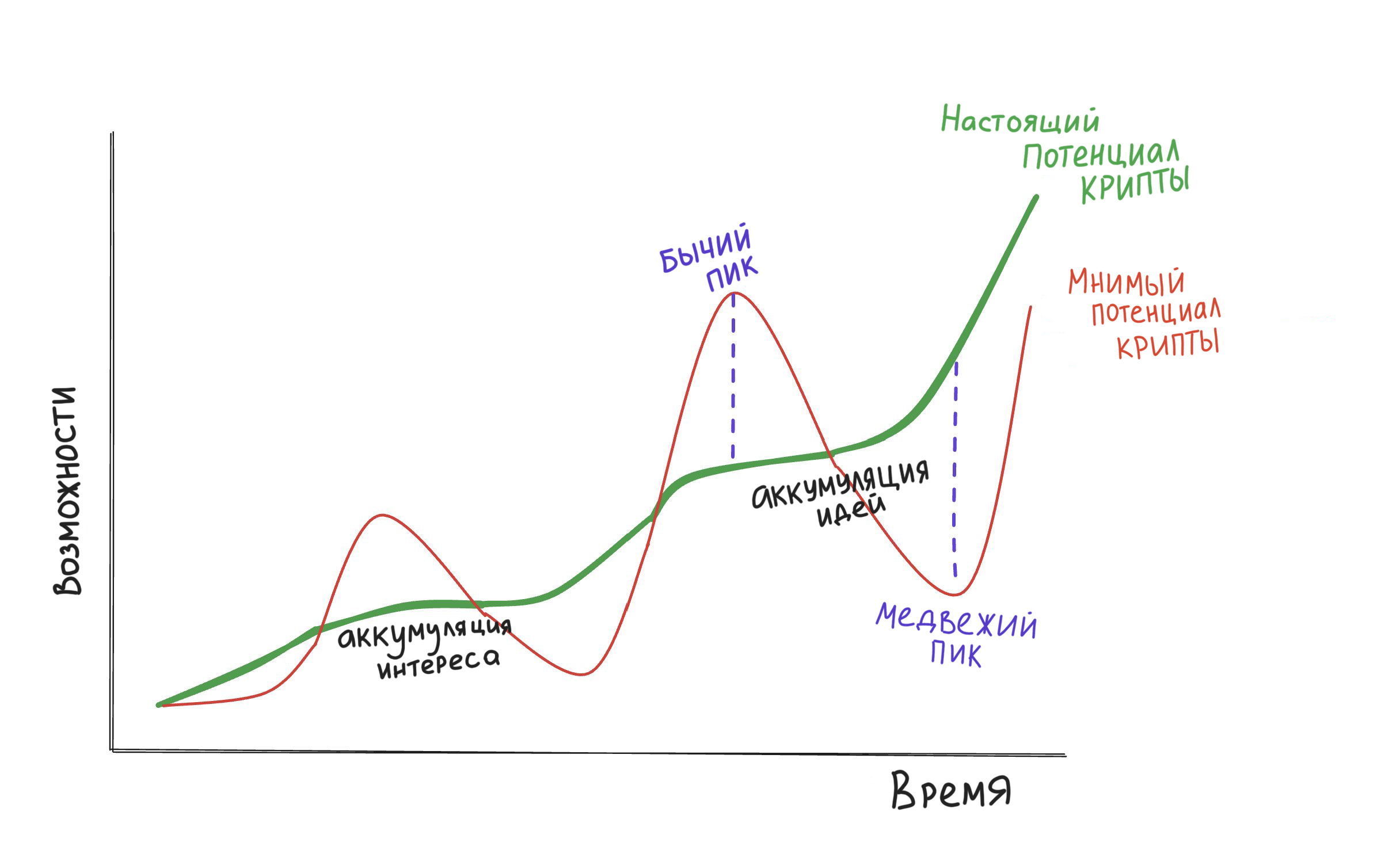 Если оригинальный твит можно считать сравнением внутреннего и внешнего мнения к самой сути крипты - ожидания намного превосходят фактическую ситуацию. Но дело здесь не столько в незнании каких-либо фактов, или примитивное мышление-восприятие новых вех пути человека разумного. Человек - аккумулирует окружение, чтобы после этого прыгнуть выше своей головы.