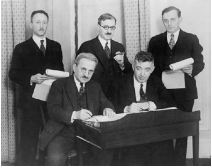 На фото: Альберт Кан и Саул Брон подписывают контракт