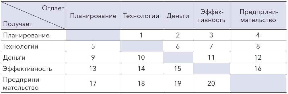 Взаимосвязь элементов формирует матрицу – своеобразную кристаллическую решетку. Она отражена в таблице на рисунке, описание функциональных связей элементов между собой представлено ниже