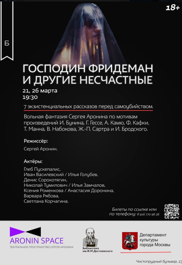 7 экзистенциальных рассказов перед самоубийством предлагает гостям городская библиотека N19 им. Ф.М. Достоевского.