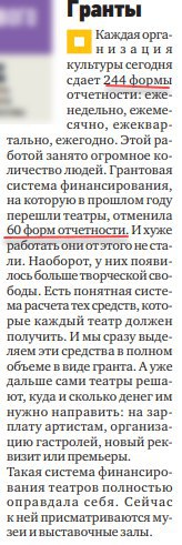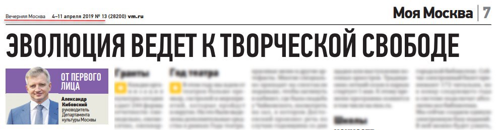Только вот к практической ее реализации Кибовский не имеет никакого отношения. Это заслуга Леонида Печатникова, который настолько устал от мышиной возни руководителя Депкульта с руководством театрами, что фактически избавил их от его назойливого контроля.