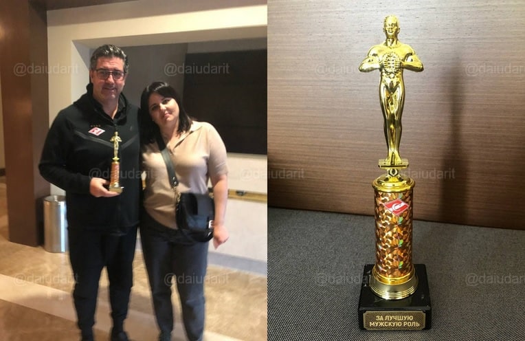 Мистер, это вам за лучшую мужскую роль, за роль тренера в Спартаке! Спасибо за Ваш профессионализм, честность, мужество! Вы - настоящий и очень крутой! Спасибо за то, что сделали миллионы болельщиков Спартака счастливыми! Это было невероятно! И тот эпизод со Спалетти - незабываем! Настоящие болельщики «Спартака» с Вами и любят Вас! Спасибо Вам! Будьте с нами!