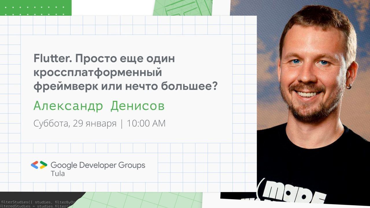 Если вы интересуетесь Flutter и живете в Туле, или вдруг в ближайшую субботу будете там находится, заглядывайте к GDG Tula на огонек, поболтаем и немного покодим.