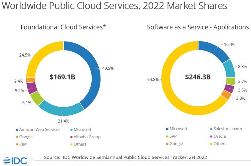 IDC опубликовала результаты исследования мирового рынка облачных сервисов за 2022 год, исходя из которых отрасль продолжает стремительно расти