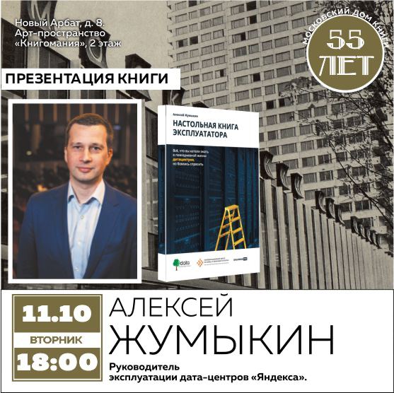 Приглашаем вас на встречу с Алексеем Жумыкиным, руководителем эксплуатации дата-центров «Яндекса» и автором книги!