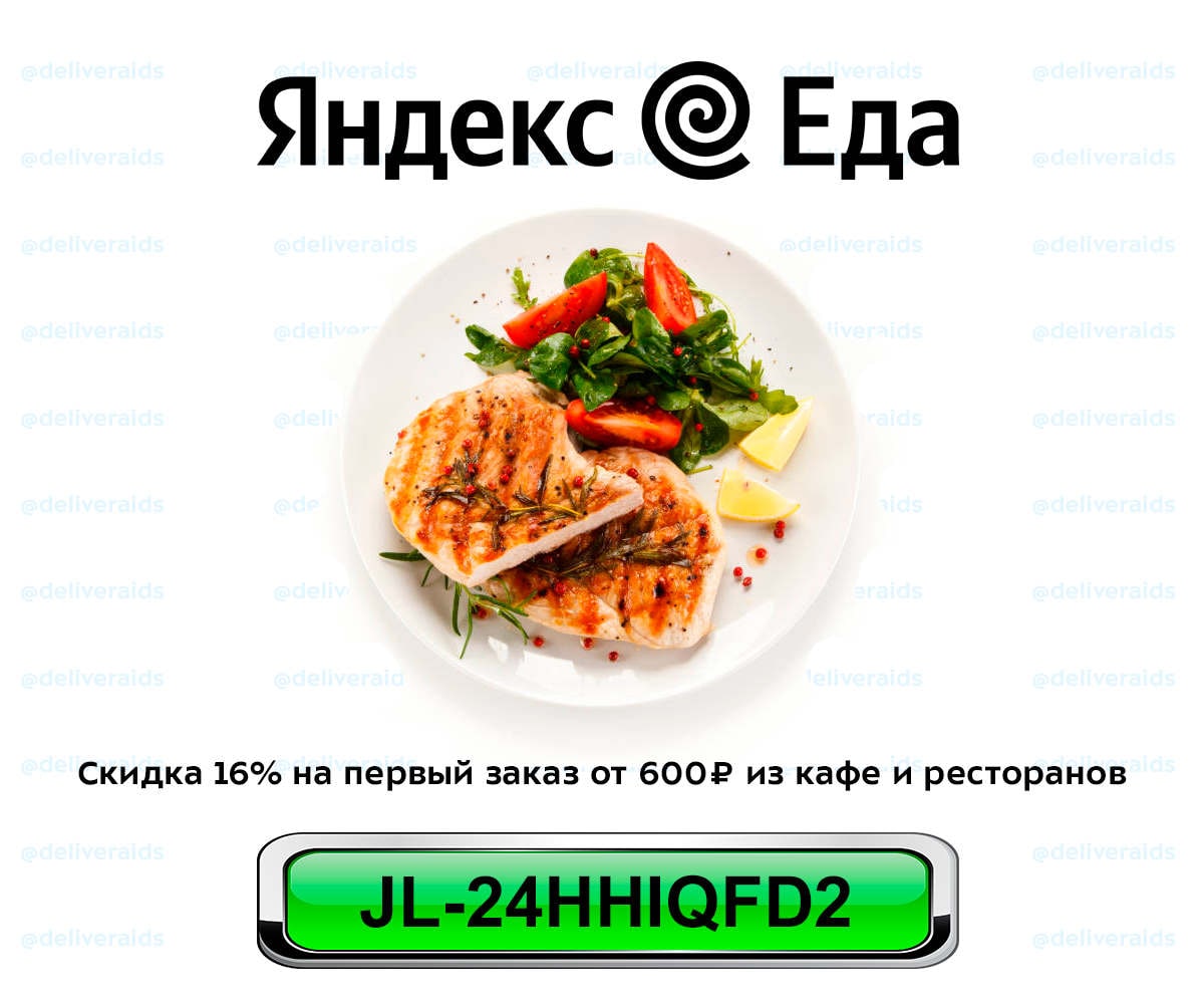 💸 Cкидка 16% на первый заказ от 600₽ из кафе и ресторанов по промокоду