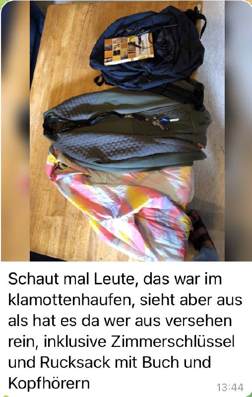Хозяева этих вещей нашлись довольно быстро, однако куча шмоток сильно меньше не стала. Ждем новых вестей от импровизированного бюро находок в моей немецкой общаге и составляем предложения с новыми словами в нашем чате😎