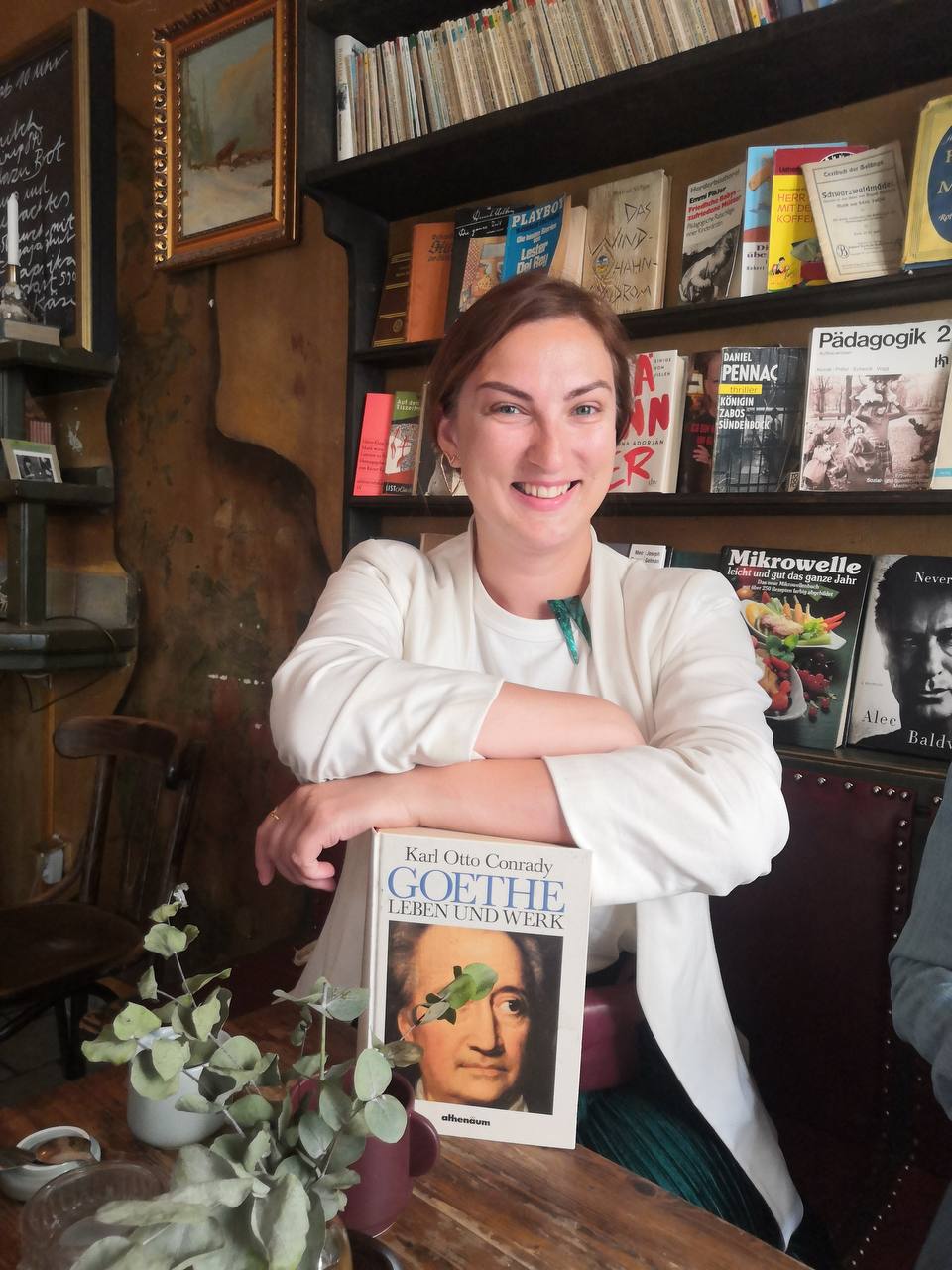 К сожалению, своё исследование я так и не довела до конца, хотя тема мне очень интересна. Чтобы вернуться к нему, я решила пойти более длинным путём и поступить сначала в магистратуру. Долго ли, коротко ли, но выбор мой пал на дистанционный университет в Хагене. Сразу после школы я уже изучала там культурологию на бакалавриате. Я сдала промежуточный экзамен, затем прервала своё обучение. На самом деле учиться было интересно, и я многое взяла из тех курсов в свою работу.