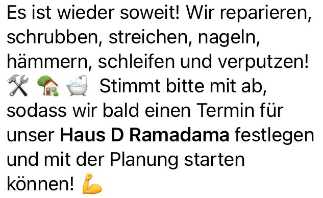 Совсем скоро в нашей общаге пройдет Ramadama — сокращение от „Räumen tun wir!“, обозначающее акцию по уборке и починке. Короче говоря, субботник!