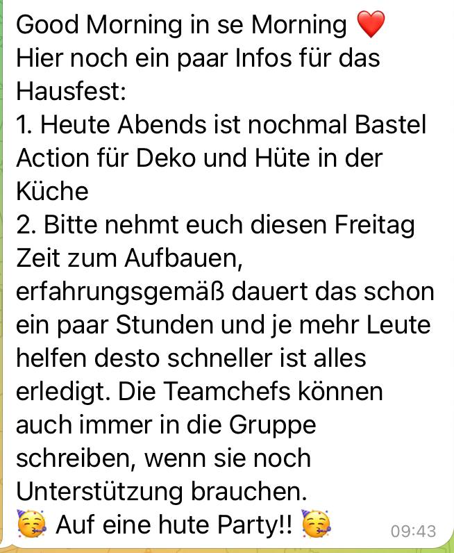 🔸das Aufbauen — построение (имеется в виду, расстановка столов, барных стоек, музыкального оборудования и прочие хлопоты)