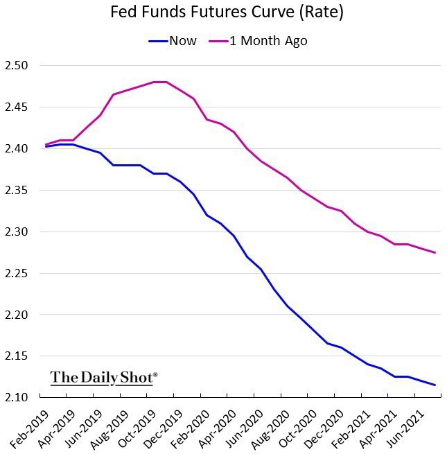 Как изменились ожидания рынков по ставкам ФРС за месяц.