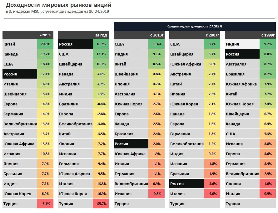 Какую доходность давали российские акции? Зависит от того, на какой отрезок времени смотреть. В 21 веке российский рынок среди лучших, с 2007 года - среди худших. Человек, который следит за акциями год, вновь увидел бы в России лучшую доходность в мире. Выводы исключительно на основе старых доходностей, безусловно, делать не стоит.