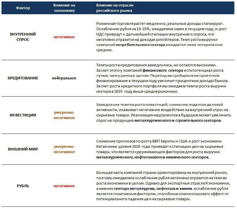 Российская экономика показала ускорение роста в 2018 году, но впереди период стагнации. Мы проанализировали как это повлияет на отрасли российского рынка акций.