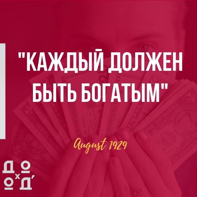 Летом 1929 года финансовый директор General Motors Джон Раскоб дал интервью, которое было озаглавлено таким цепким лозунгом. Он говорил, что США находятся на пороге небывалого промышленного процветания и что человек, который вкладывает в акции по $15 в месяц, сможет достичь капитала в $80 000 через 20 лет, настоящего богатства по тем временам. Прогноз предполагал неадекватно высокие ожидания среднегодовой доходности в 24%, однако он был отражением эйфории, которая захватывала фондовый рынок в те годы.