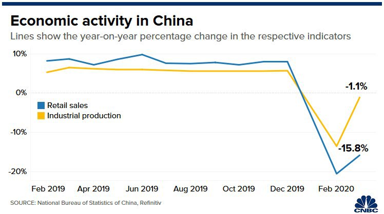 Снижение ВВП наблюдается впервые с 1992 года, когда началась официальная публикация квартальных данных. Ожидается, что в 2020 году ВВП второй по величине экономики мира замедлится с 6,1% в 2019 году до 1-2,5% . По данным Национального бюро статистики Китая, средний темп роста в 2020-2021 годах составит более 5% в год.