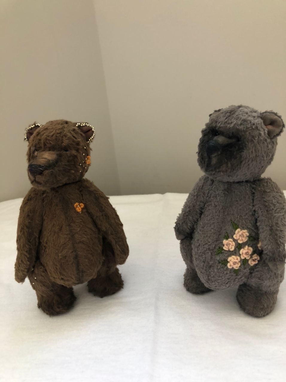 У меня два новых героя на Вашу оценку! Мишки «Тедди»! Симпатичные ребята получились )))) Набиты опилками и ручная вышивка + бисер (а серый мишка получил даже и антикварный бисер, есть у меня старинная подвеска, ВЕЛИКОЛЕПНАЯ, вот я по чуть-чуть отщипываю от нею и украшаю своих любимцев)!