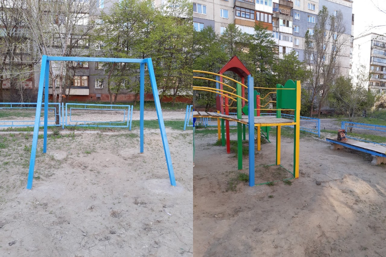 В Алчевске, во дворе по адресу пр. Металлургов, 28, покрасили детскую площадку. Что ж в этом плохого, спросит обыватель. Дело в том, что детская площадка начала «исчезать» по частям еще в прошлом году. Первой растворилась в пространстве качеля. Затем отправилась в неизвестном направлении горка. Осталось то, что осталось. И его заботливо освежили к весне – покрасили остов от качелей и обрубки детской горки. Вот такое благоустройство и забота о детях. Кто-то скажет, что во многих дворах детские площадки попросту не нужны, так как в окрестных домах не осталось детей, одни пенсионеры. На Ленина, 46 в Алчевске проблему решили более радикально. Чтоб не ремонтировать и не тратить краску, детскую площадку просто демонтировали. Тяжелое детство в ЛНР…