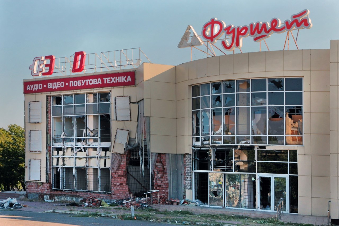 Некогда крупный супермаркет, который не функционирует уже несколько лет, круто поменяет специализацию. Продолжается процесс восстановления, при этом охрану объекта обеспечивают не специально обученные для этого люди (частная или государственная охрана), а военные.