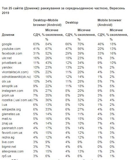 По данным Factum Group Ukraine, среди 25 самых посещаемых доменов на Украине заблокированные российские сайты сохранили свои позиции.