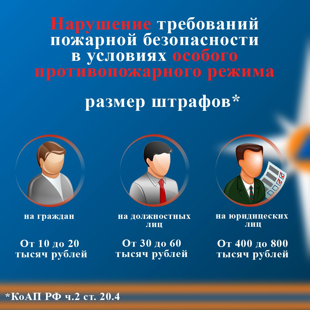 ❗А это значит, что категорически запрещено использование открытого огня. При введении особого противопожарного режима такой санкции как предупреждение нет, предусмотрено административное наказание в виде штрафа на гражданина с минимальной суммой 10 тысяч рублей. Если будут выявляться факты сжигания сухой растительности, то будет применяться максимальная санкция для граждан – штраф 20 тысяч рублей.