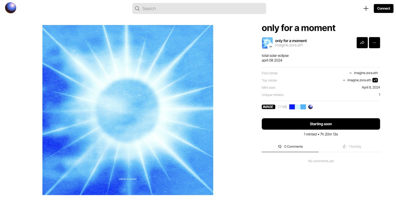 Сейчас сделали анонс, о новой официальной NFT Zorb Eclipse. На Mint этой NFT будет всего 4 минуты. Если вы фармите Airdrop от Zora, то такие NFT нужно забирать, тут вполне даже может быть нормальный Floor после сейла