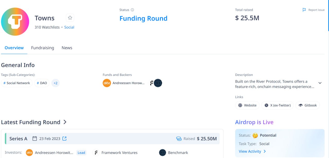 Towns — это новый SocialFi проект, то есть социальная сеть, построенная на блокчейне, в данном случае аналог Discord. У проекта уже имеется $25.5млн инвеста от тир1 фонда a16z и других