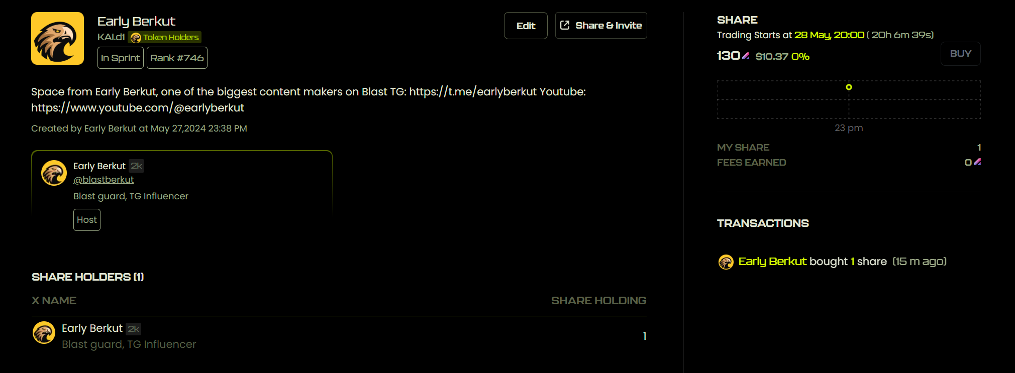 Также можно получить еще x3 к бусту если вы купите Share спейса, в котором будете фармить. Share - это что-то типо акции, которую можно купить, а потом продать. Она может как вырасти, так и упасть.