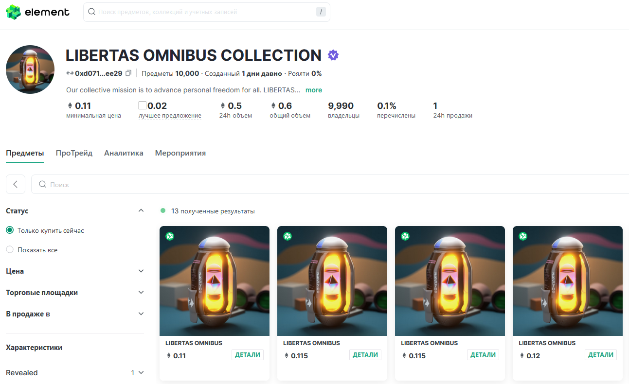 Всего таких пользователей было около 180 тысяч, коллекция с капсулами уже торгуется на Element Market, там же можно посмотреть аирдропнули ли на ваш кошелек заветную капсулу.