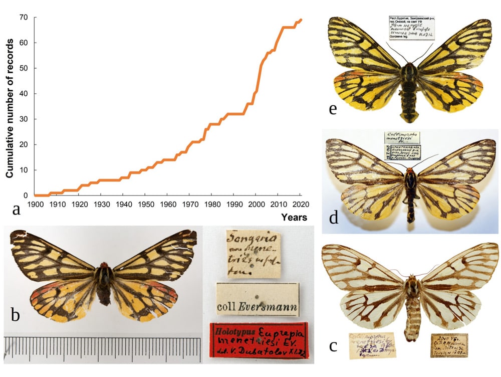 Arctia menetriesii была описана русским энтомологом Эдуардом Эверсманом в 1846 году по единственному экземпляру, найденному в горах на северо-востоке Казахстана. Бабочку назвали в честь Эдуарда Менетрие – русского учёного французского происхождения, одного из основоположников отечественной энтомологии.