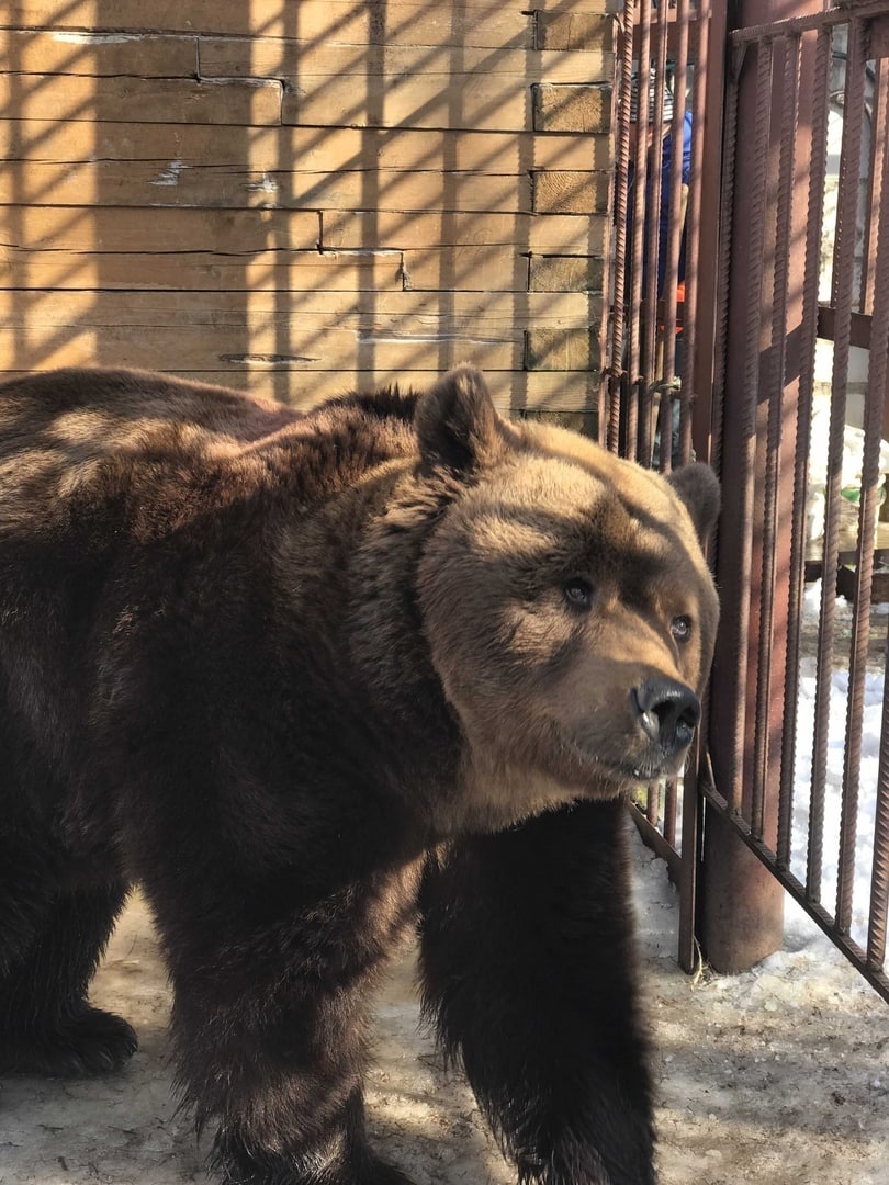 🐻Весенняя линька у бурых медведей протекает медленно, практически все лето. Это необходимый процесс смены шерстяного покрова, когда медведь на зиму «запасается» не только питательными веществами, но и хорошим мехом, чтобы благополучно пережить лютые морозы. А с наступлением весны можно и «сбросить» тяжелую теплую шубу. Миша – взрослый 29-летний медведь и способен сам позаботиться о своем внешнем виде во время линьки. Он прекрасно удаляет старую шерсть зубами, трется о вольер спиной, почесывается.