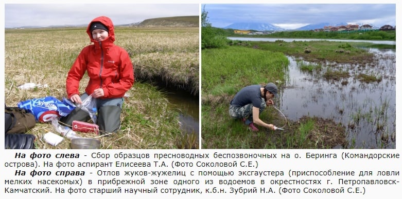 Так, в мае-июне были проведены исследования по изучению разнообразия водных и наземных беспозвоночных на острове Беринга и полуострове Камчатка (Камчатский край). Собранные материалы позволят изучить филогенетические связи и выявить пути расселения ряда модельных таксонов насекомых (жужелицы, шмели) и водных беспозвоночных (пиявки, моллюски, ракообразные). Данные исследования были выполнены в ходе работ по проектам РНФ (проект № 19-14-00066, рук. М.В. Винарский) и РФФИ (проект № 19-34-60042, рук. Н.А. Зубрий).