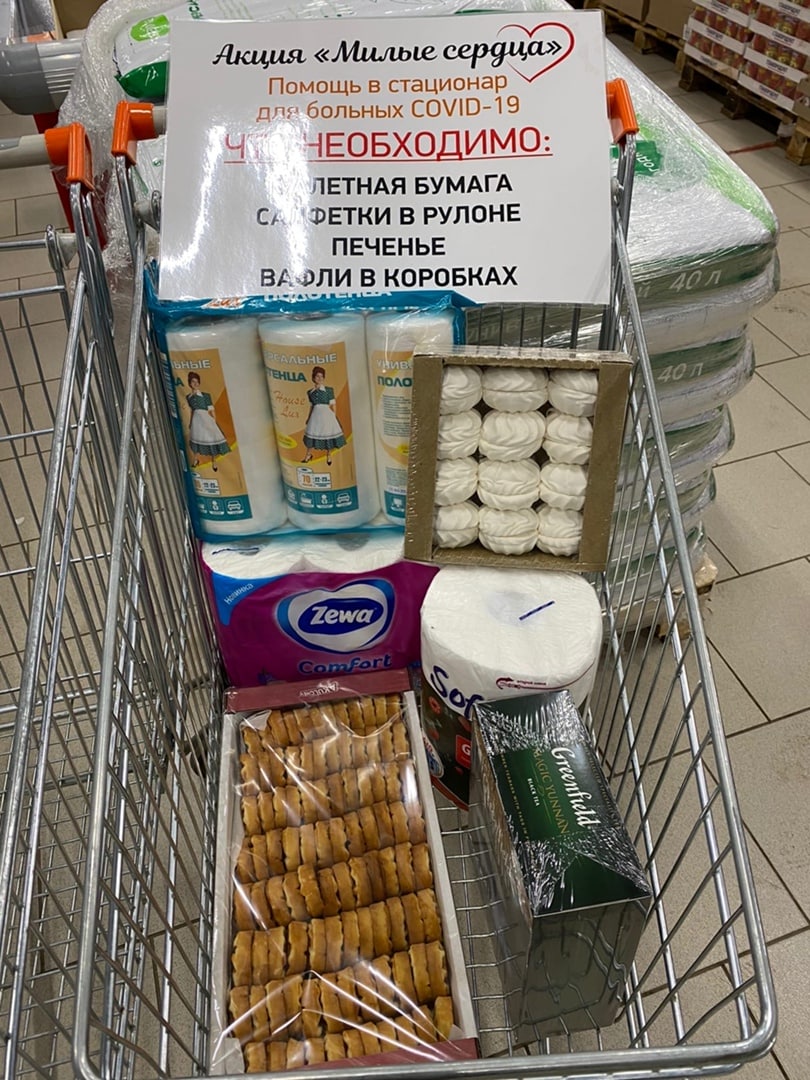 В Котласе в магазине «Светофор» на Болтинском шоссе и магазине «Доброцен» на улице Багратиона установлены специальные тележки для сбора благотворительной помощи больным COVID-19, находящимся на излечении в ковидном госпитале города.