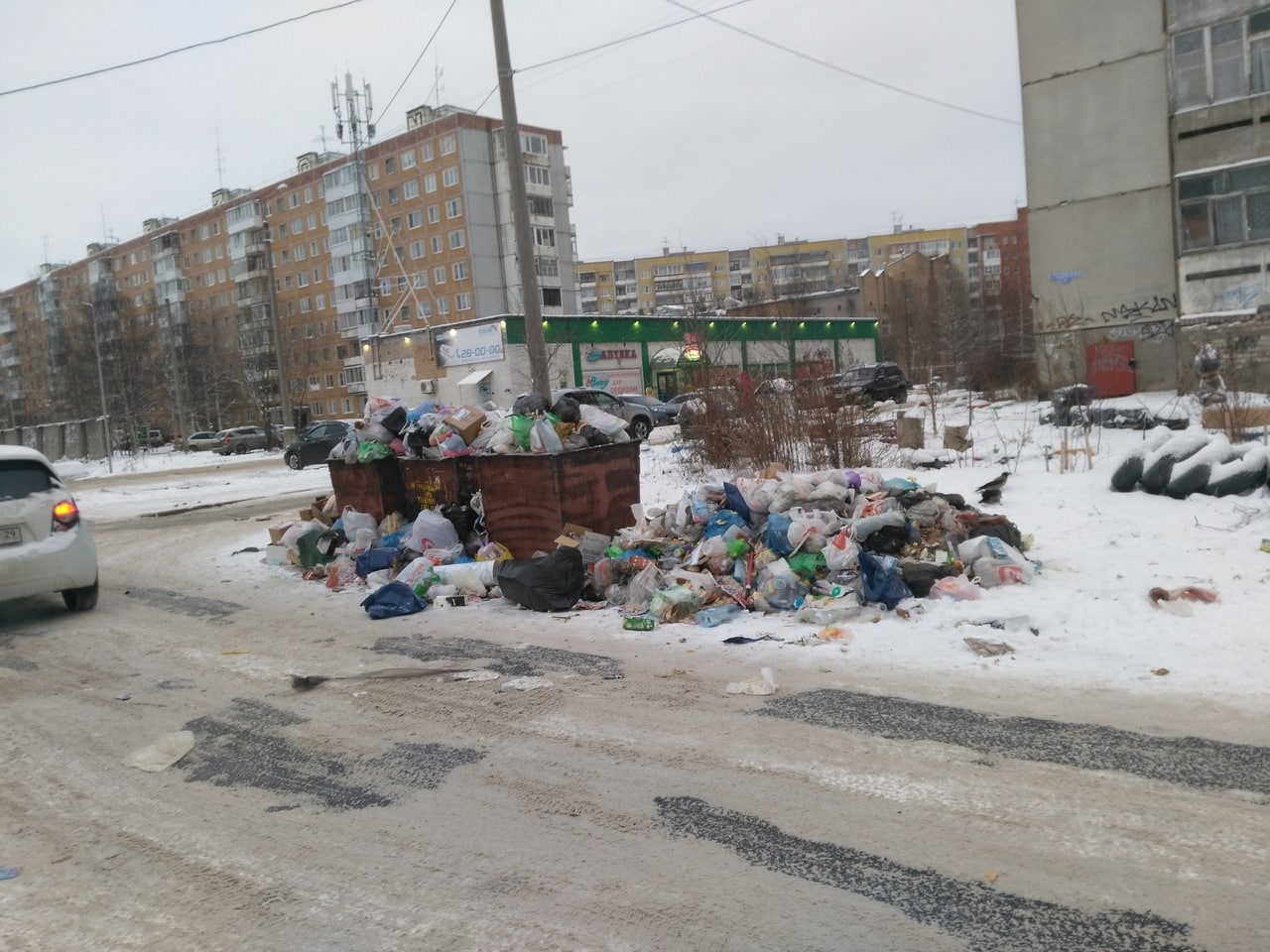 На фото - контейнерная площадка на Бадигина, 24 по состоянию на 12.06 субботы 19 декабря. Но такая ситуация по всему городу. "