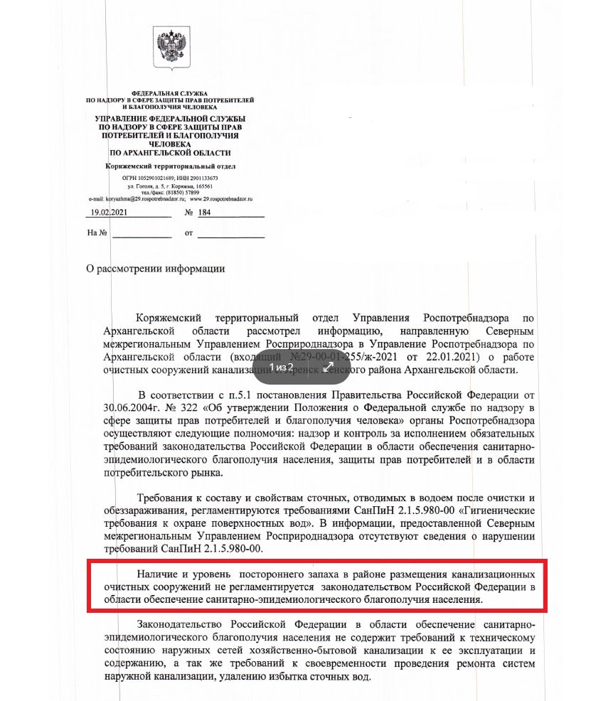 Экология Поморья. Северо-Запад pinned «Продолжаем наблюдать за историей со сбросом хозфекальной канализации в с. Яренск💪🏻 Итак, ранее от проблемы героически открестилось министерство ТЭК и ЖКХ Архангельской области. Ну а нынче мы получили ответ от управления Роспотребнадзора по г. Коряжма. …»