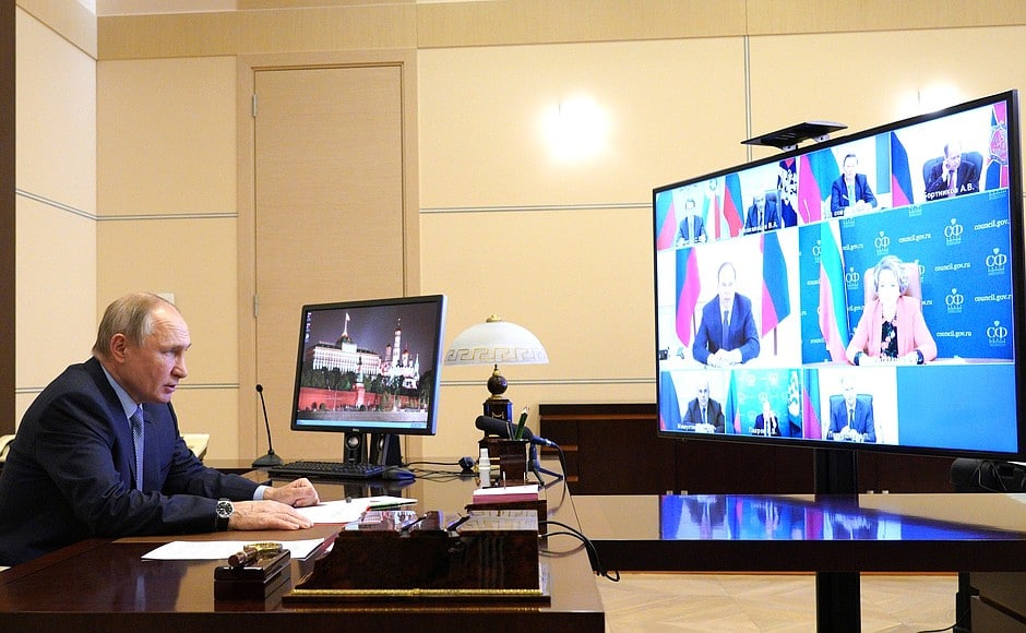 В совещании приняли участие премьер-министр Михаил Мишустин, председатель Совета Федерации Валентина Матвиенко, руководитель кремлевской администрации Антон Вайно, секретарь Совбеза Николай Патрушев, министр внутренних дел Владимир Колокольцев, министр иностранных дел Сергей Лавров, директор ФСБ Александр Бортников, директор Службы внешней разведки Сергей Нарышкин, спецпредставитель президента по вопросам природоохранной деятельности, экологии и транспорта Сергей Иванов.