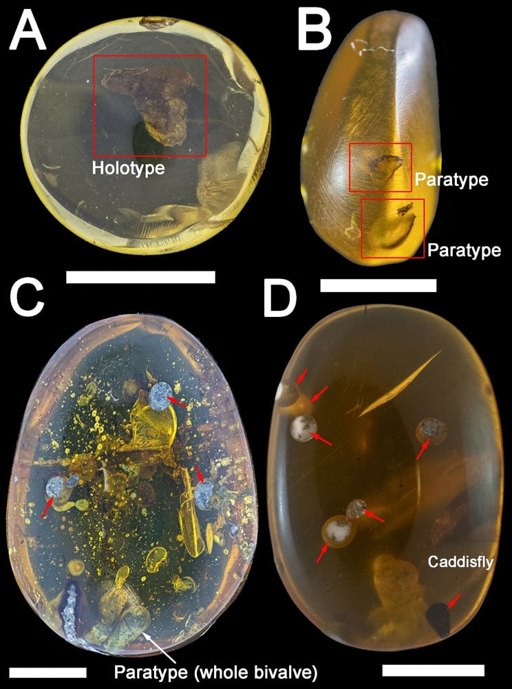Древние моллюски-бурильщики, заключенные в смолу 100 млн лет назад, могли быть пресноводными, это меняет представление о среде обитания динозавров.