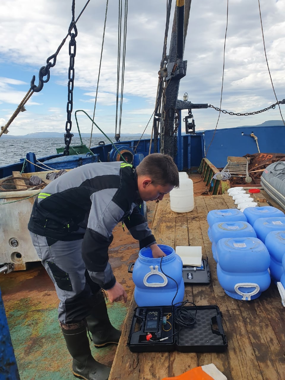 В ходе экспедиции молодым архангельским ученым, заведующим лабораторией экологической радиологии Федерального исследовательского центра комплексного изучения Арктики Уральского отделения РАН Евгением Яковлевым были отобраны пробы для дальнейшего анализа, который позволит оценить присутствие в морской воде талых материковых вод, поступающих из-за деградации мерзлоты. Работа осуществляется в рамках гранта Российского научного фонда.