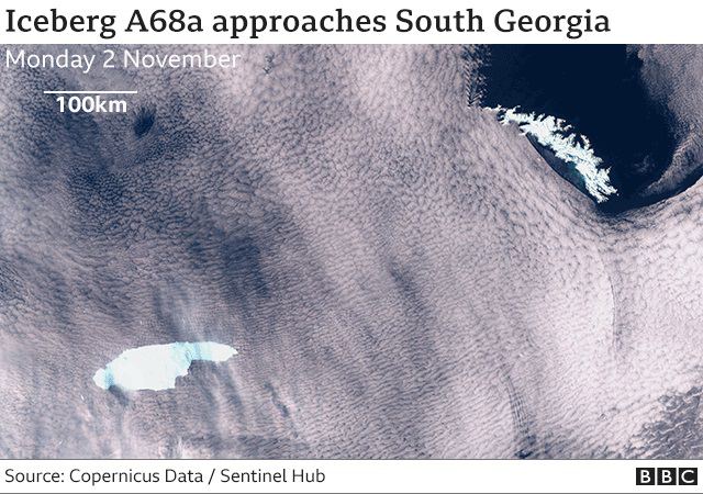 🧊 Британская антарктическая служба бьет тревогу: айсберг А-68А, который на сегодняшний день считается самым большим в мире, двигается по направлению к острову Южная Георгия. Если он достигнет цели, экосистеме острова придёт конец. Айсберги способны не только топить корабли, но и, осев на дно, убивать морскую фауну и блокировать каналы добычи пищи для млекопитающих – пингвинов и тюленей, так что те погибнут с голода.