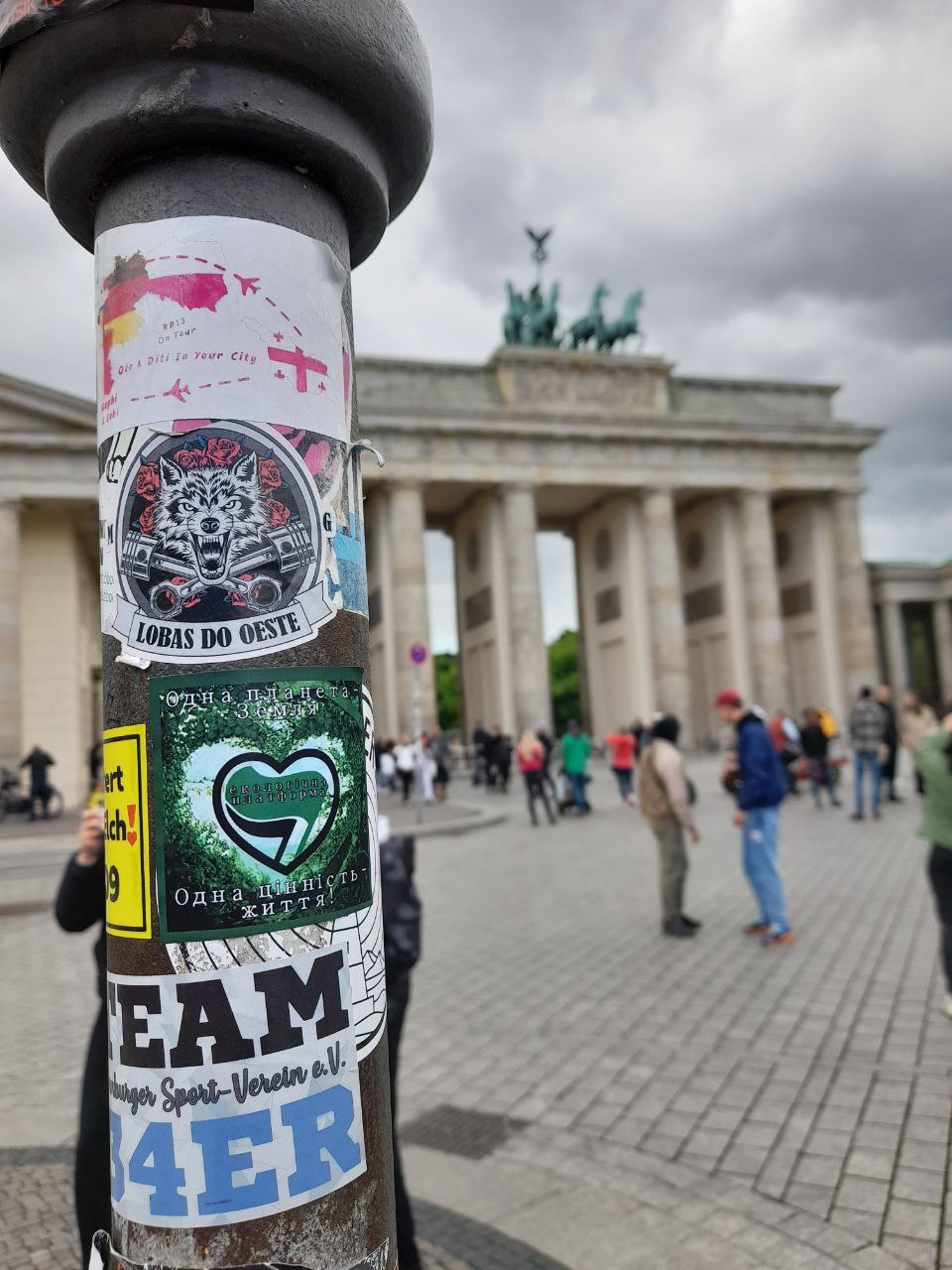 На фото нижче - стікери з агітацією у Берліні, Німеччина.