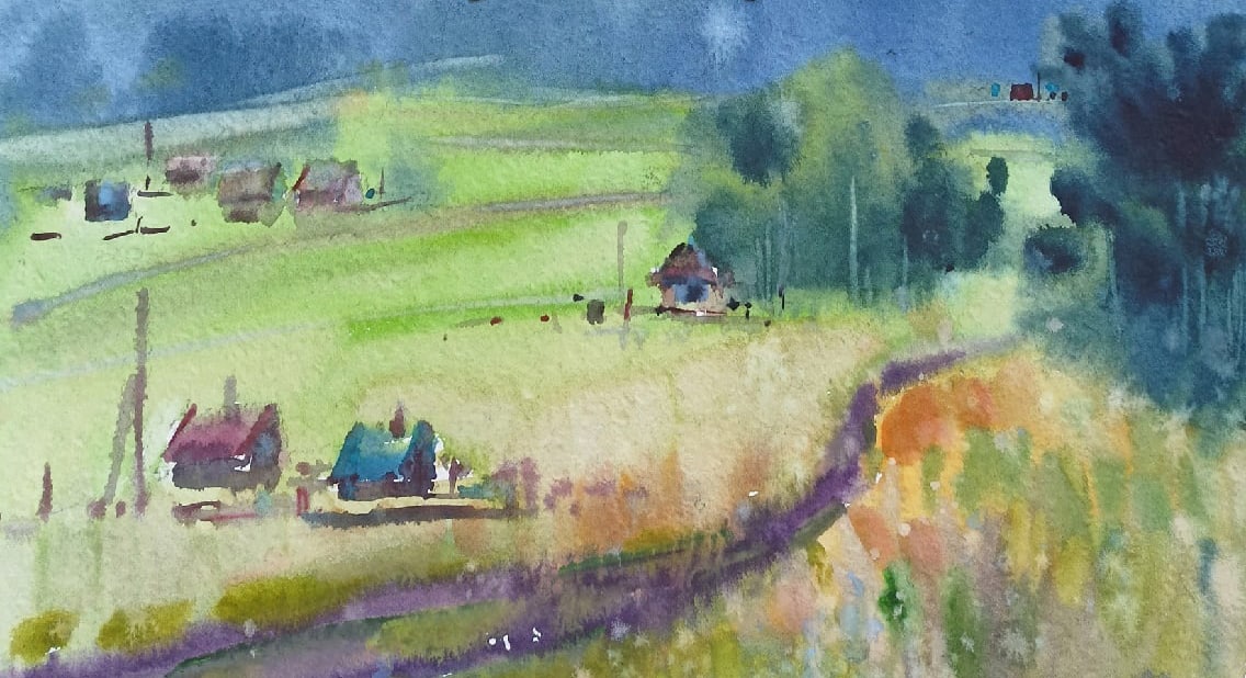 Есть совсем новые акварели, этого лета, - из семейного путешествия по Уралу (Пермский край, Свердловская область). Несколько работ - городской пейзаж (Екатеринбург).