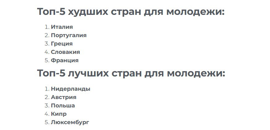 🌏 Названы лучшие и худшие страны Европы для молодых людей.