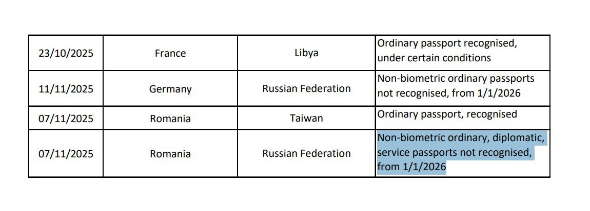 🇷🇴 Румыния перестанет признавать российские небиометрические загранпаспорта