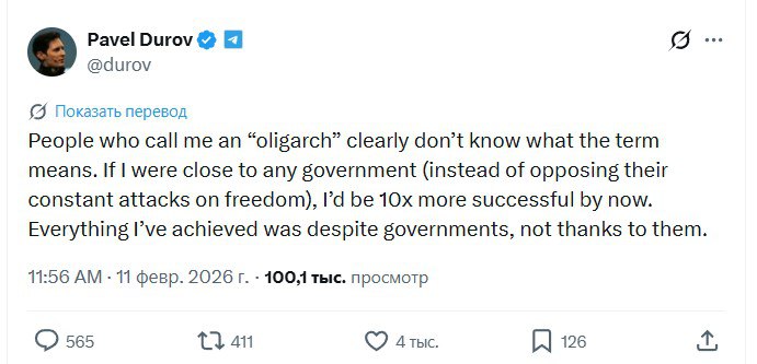 Основатель Telegram Павел Дуров назвал некорректным слово «олигарх» в отношении него: