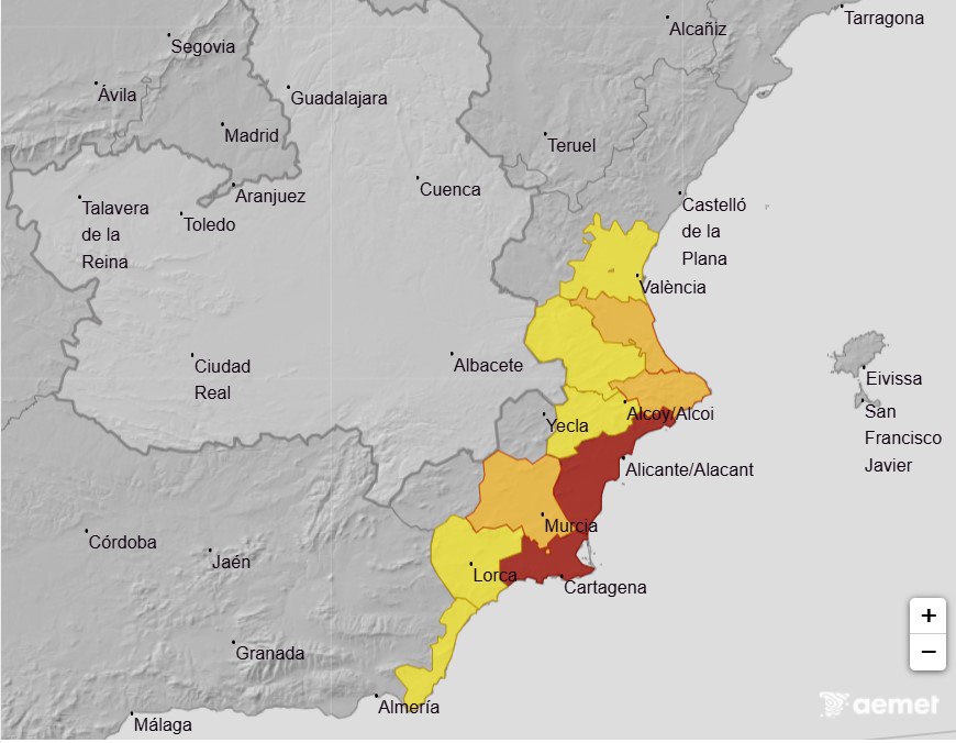 Красный уровень опасности будет действовать с 10:00 10 октября в прибрежных средиземноморских районах провинции Аликанте, а также в соседнем регионе Мурсия. В субботу тоже будет не легче.